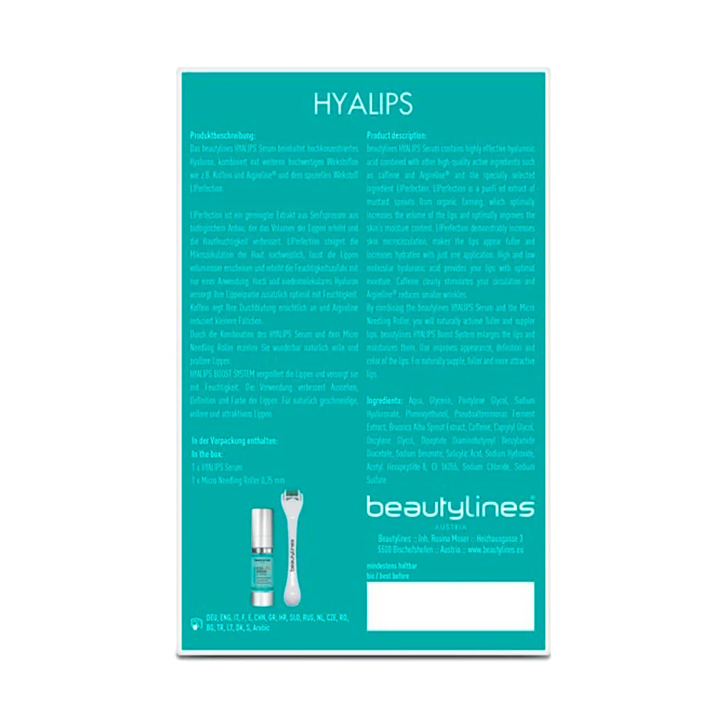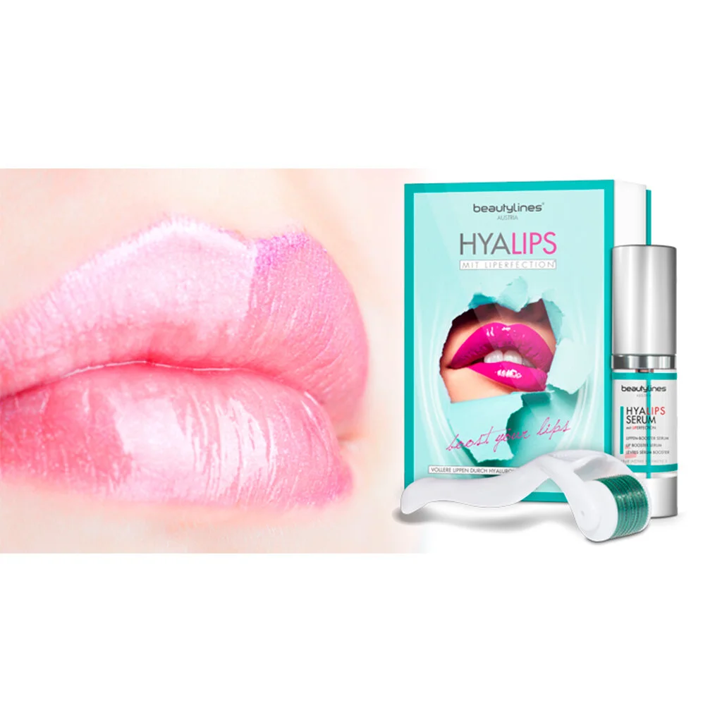 Das beautylines® HyaLIPS Serum beinhaltet mehrfach molekulares Hyaluron, kombiniert mit weiteren hochwertigen Wirkstoffen wie z.B. Koffein und Argireline® und dem speziellen Peptid für voluminöse Lippen: LIPerfection®
