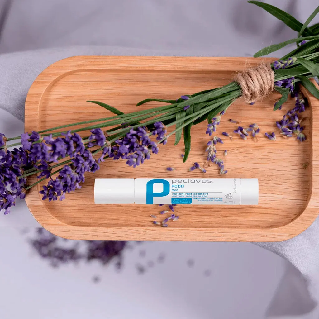Der peclavus PODOmed AntiMYX Protectorstift bietet einfachste Applikation bei hoher Wirkung. Für die Regeneration verfärbter, geschädigter Nägel, auch bei Nagelpilz. Durch das spezielle Carrier-System gelangen die Wirkstoffe durch die Nagelplatte bis in die Nagelmatrix. Die komplexe Wirkung ist durch Analysen nachgewiesen und wird erzielt durch ein abgestimmtes Zusammenspiel ätherischer Öle wie Blue Cypress-, Lavendel- und Teebaumöl. Als begleitende Hautpflege eignet sich die peclavus PODOmed AntiMYX Fußcreme. vegan | therapiebegleitende Pflege