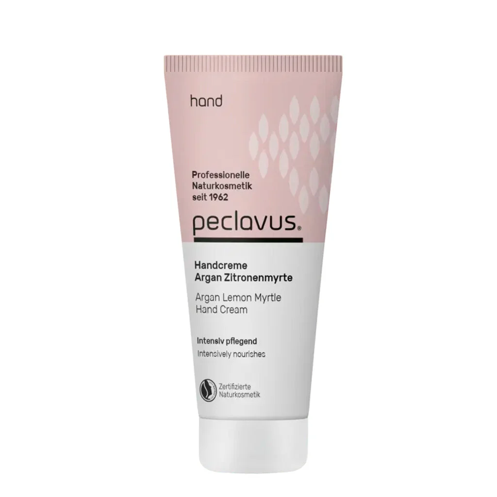 Die peclavus hand Handcreme Argan Zitronenmyrte spendet dank des reich enthaltenen Bio-Arganöls intensive Pflege für beanspruchte Hände und zieht sehr schnell ein – insbesondere bei trockener und reifer Haut. Sein sonniger Charakter ruft ein ausgeprägtes Gefühl der wohligen Entspannung hervor, das vom dezent erfrischenden Duft der Zitronenmyrte harmonisch unterstützt wird. Die raffinierte Kombination aus Mandelöl und Bio-Sheabutter beruhigt, glättet und spendet wertvolle Feuchtigkeit. Ihre Hände fühlen sich samtweich und gepflegt an. NATRUE-zertifizierte Naturkosmetik | vegan