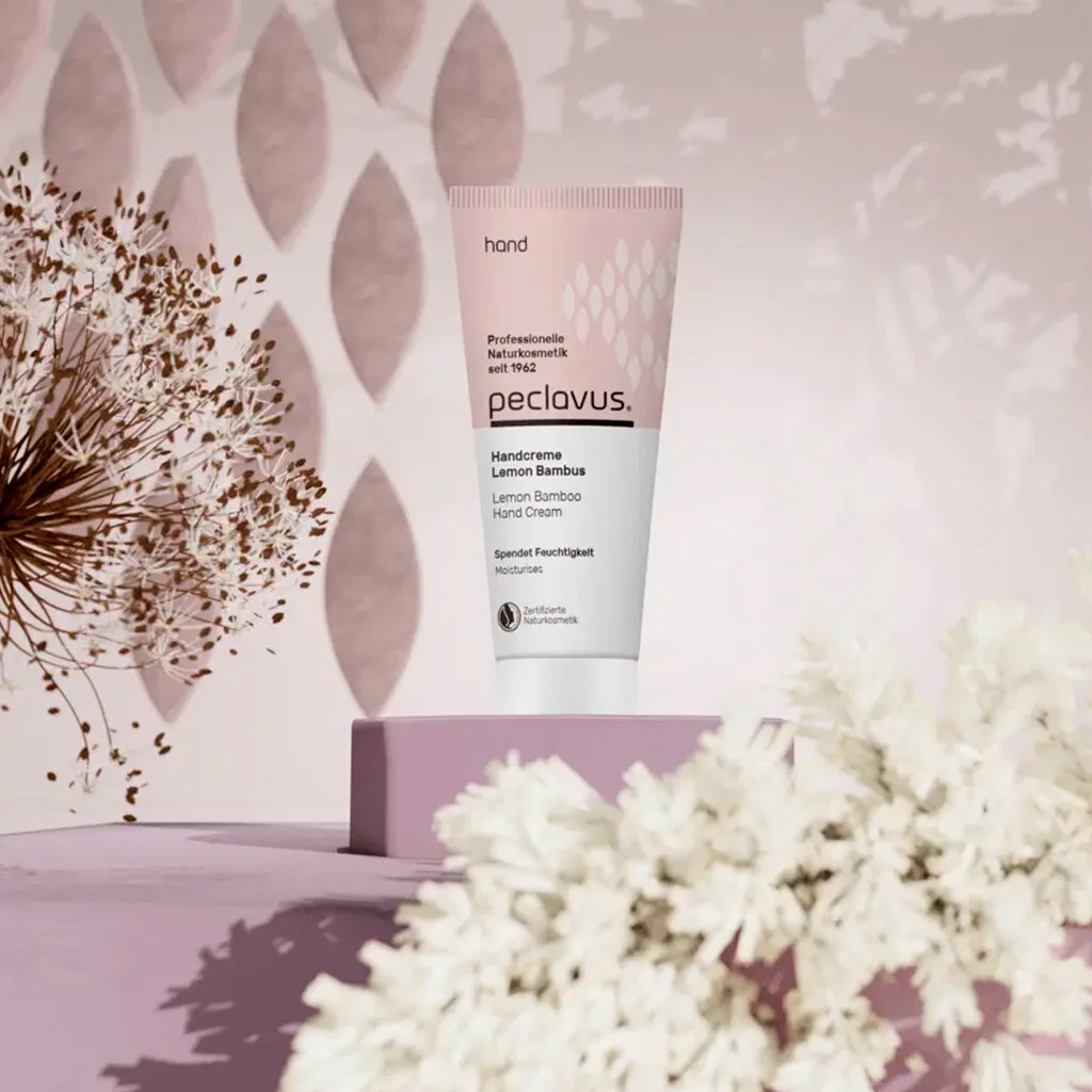 Die peclavus hand Handcreme Lemon Bambus zieht sehr schnell ein und spendet beanspruchten Händen wertvolle Feuchtigkeit. Der reich enthaltene Bambussprossen-Extrakt entfaltet dabei seine volle Wirkung. Fruchtige Lemon-Essenzen verbinden sich mit der Frische des asiatischen Bambus und bringen gemeinsam neuen Schwung in Körper und Geist. Die raffinierte Kombination aus Mandelöl und Bio-Sheabutter beruhigt, glättet und spendet wertvolle Feuchtigkeit. Die Hände fühlen sich samtweich und gepflegt an. NATRUE-zertifizierte Naturkosmetik | vegan