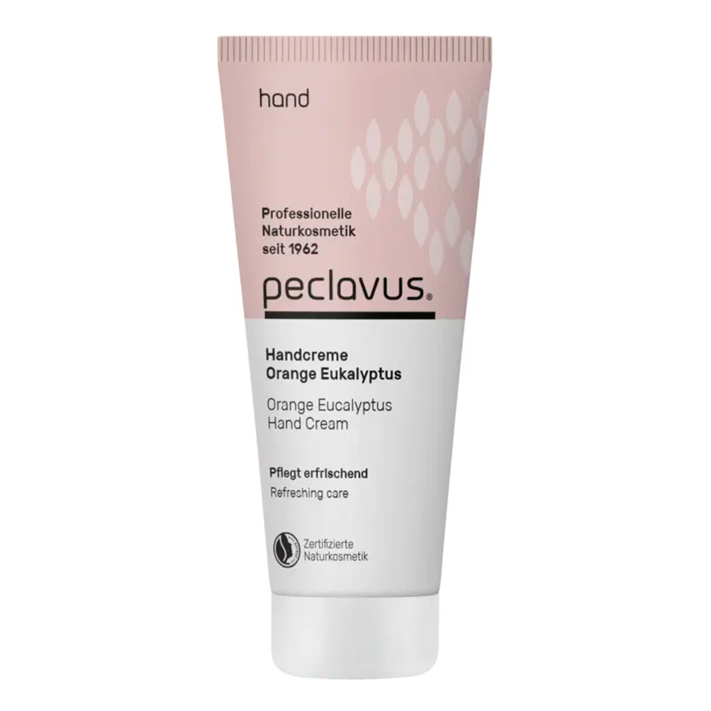 Die peclavus Handcreme Orange Eukalyptus zieht sehr schnell ein und spendet Kraft und intensive Pflege. Der fruchtig süße Duft der Orange und der erfrischende Duft des Eukalyptus stimulieren den Geist, schenken Lebensfreude und wirken energetisch. Die raffinierte Kombination aus Jojobaöl und Bio-Sheabutter wirkt feuchtigkeitsregulierend und kann die Hautbarriere schützen. Natürliches Vitamin E fördert zusätzlich die Widerstandsfähigkeit der Haut. Ihre Hände fühlen sich glatt und geschmeidig an.