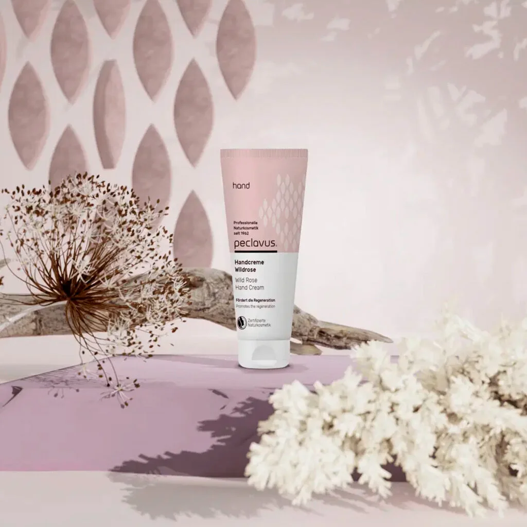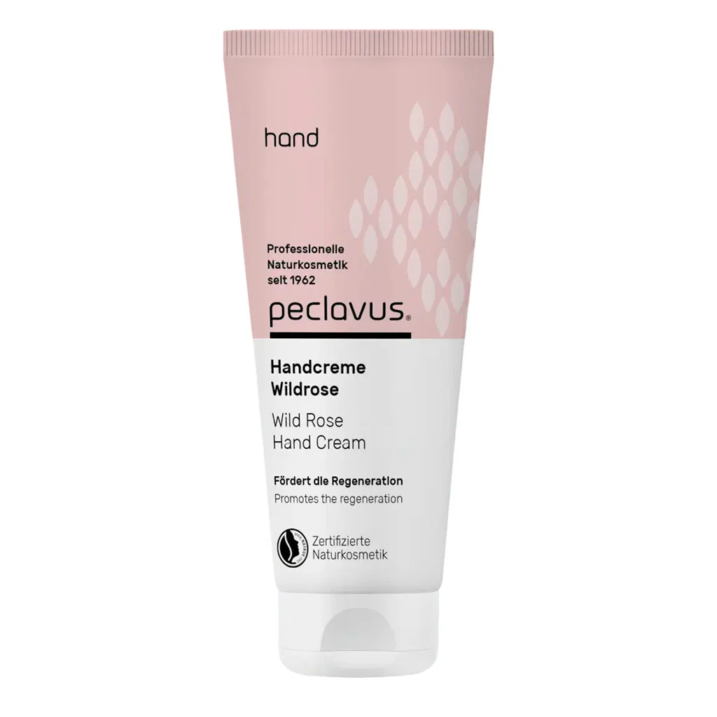 Die peclavus hand Handcreme Wildrose zieht sehr schnell ein und fördert die Regeneration beanspruchter Hände – insbesondere bei reifer Haut. Das enthaltene Bio-Wildrosenöl unterstützt aktiv die Zellerneuerung, seine blumig-zarten Duftnoten lassen zudem Körper und Geist sanft zur Ruhe kommen. Die raffinierte Kombination aus Mandelöl und Bio-Sheabutter beruhigt, glättet und spendet wertvolle Feuchtigkeit. Die Hände fühlen sich samtweich und gepflegt an. NATRUE-zertifizierte Naturkosmetik | vegan