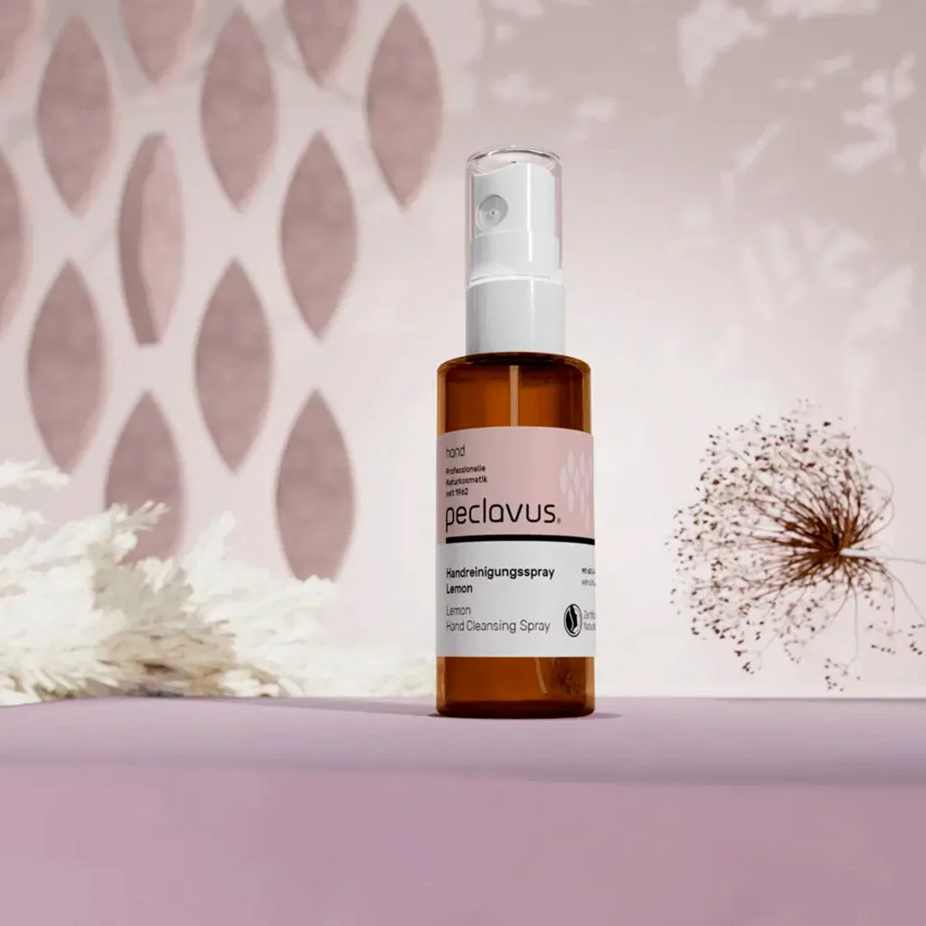 Das peclavus hand Handreinigungsspray Lemon reinigt und pflegt die Hände auf natürliche Weise. Die raffinierte Kombination aus antiviral wirkendem Öl der Zitronenmyrte und Bergamotteminze sowie dem antiseptisch wirkenden Lavendelöl schützt die Hände zuverlässig. Der Alkoholanteil von 63% sorgt für eine desinfizierende Wirkung. Hautpflegendes Glycerin und der erfrischende Duft runden das angenehm saubere Hautgefühl ab, ob Zuhause, im beruflichen Alltag, in der Freizeit, auf Reisen oder unterwegs. NATRUE-zertifizierte Naturkosmetik | vegan