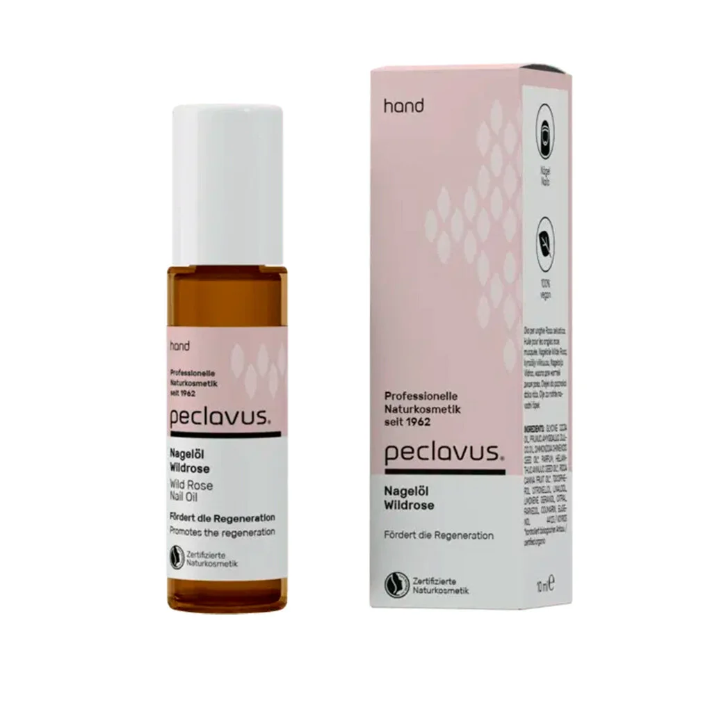 Das peclavus hand Nagelöl Wildrose fördert die Regeneration beanspruchter Nagelhaut und sorgt für strahlend glänzende Nägel. Das enthaltene Bio-Wildrosenöl unterstützt aktiv die Zellerneuerung, seine blumig-zarten Duftnoten lassen Körper und Geist sanft zur Ruhe kommen. Mildes Mandelöl, natürliches Bio-Jojobaöl und Vitamin E fördern den spür- und sichtbaren Pflegeeffekt dieser schnell einziehenden Nagelöl-Komposition. NATRUE-zertifizierte Naturkosmetik | vegan