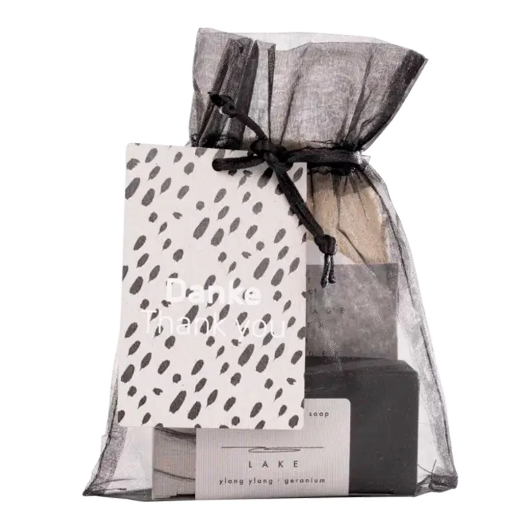 Naturseifen Geschenk-Set mit Seifenablage aus Luffa, Lake – Ylang Ylang & Geranium