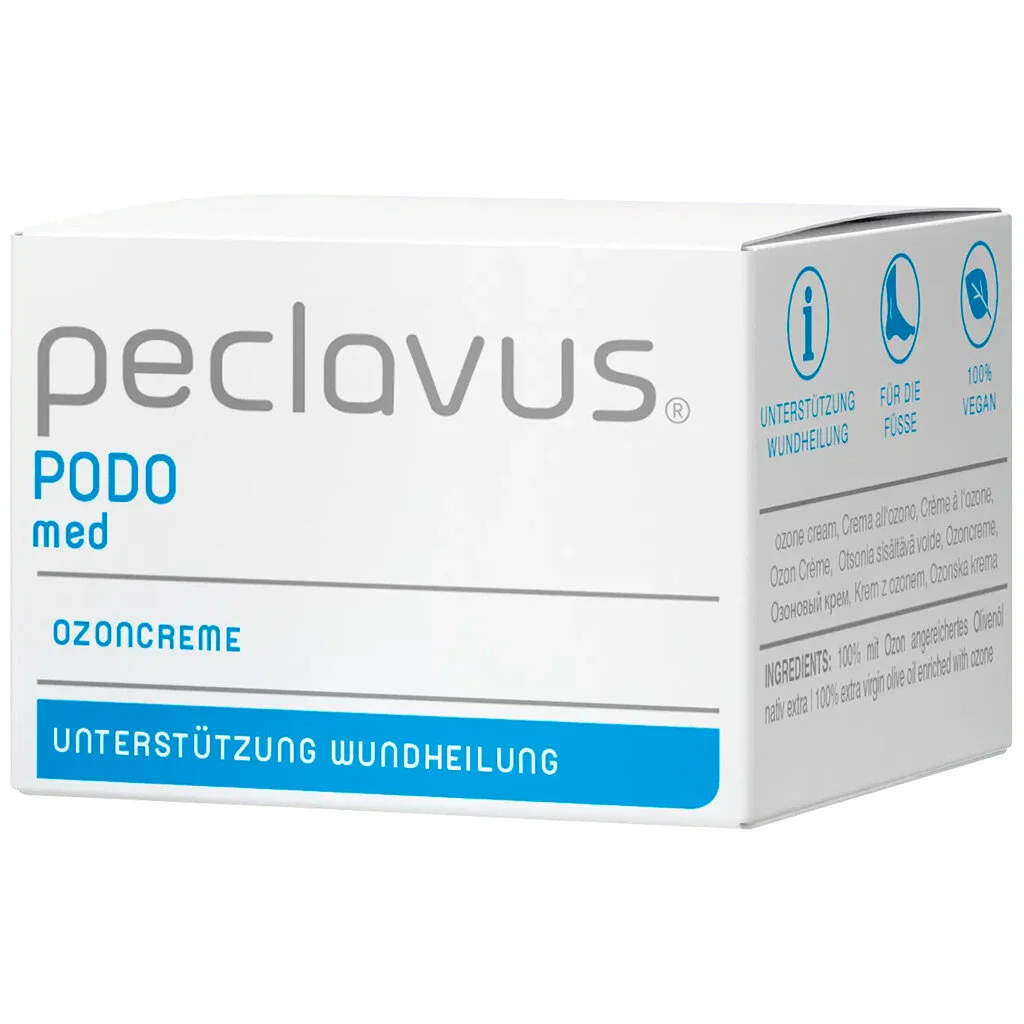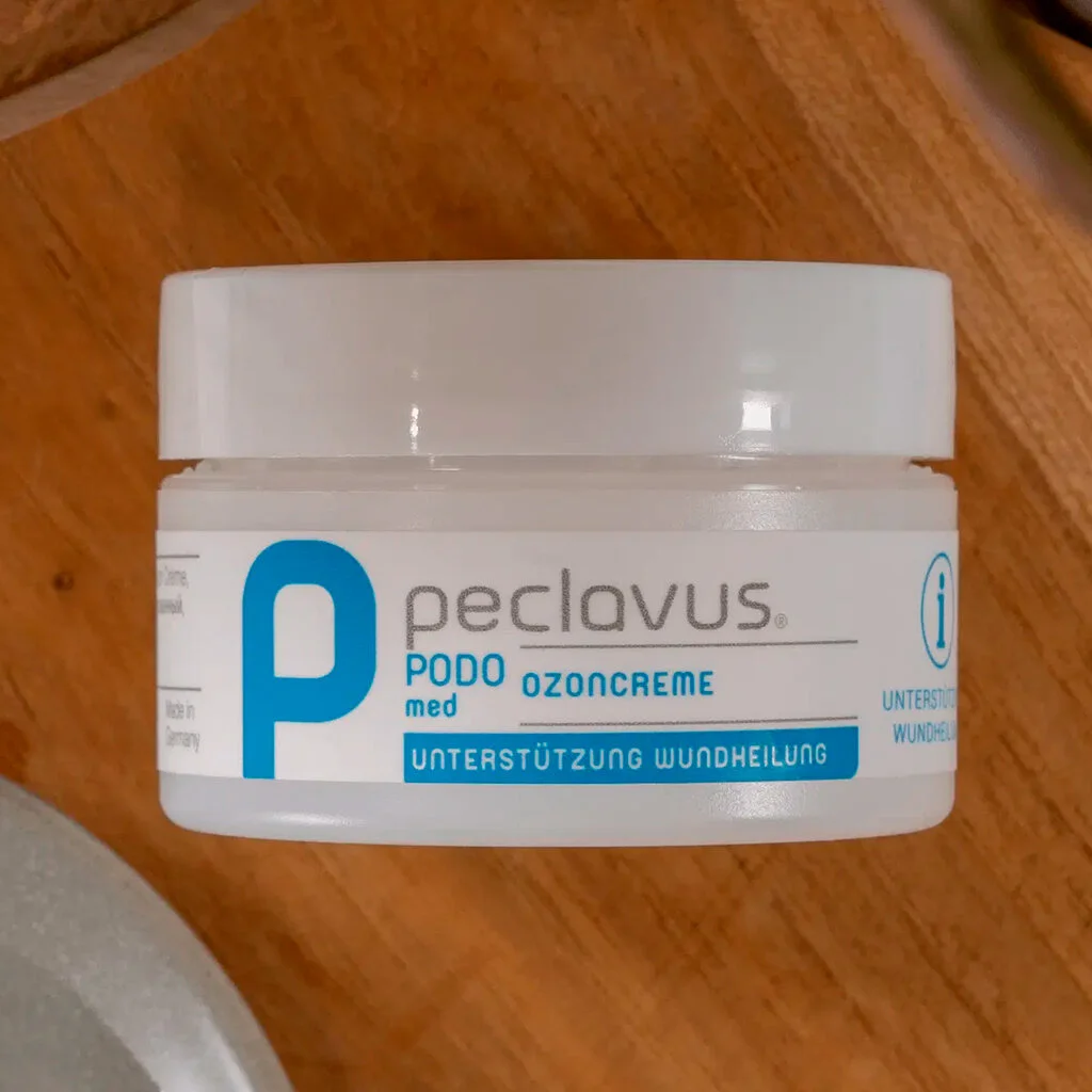 Die peclavus® PODOmed Ozoncreme ist ideal zur Förderung von Heilungsprozessen bei Hautirritationen, besonders im Nagelfalz. Auch zur Benetzung von Tamponaden geeignet. Sie wirkt keimhemmend, gewebeanregend und verflüssigt sich durch die Hautwärme, wodurch schnell tiefere Bereiche erreicht werden. Auf natürlicher Olivenölbasis mit biologisch verwertbarem Ozon angereichert. Dieses Produkt ist vegan.